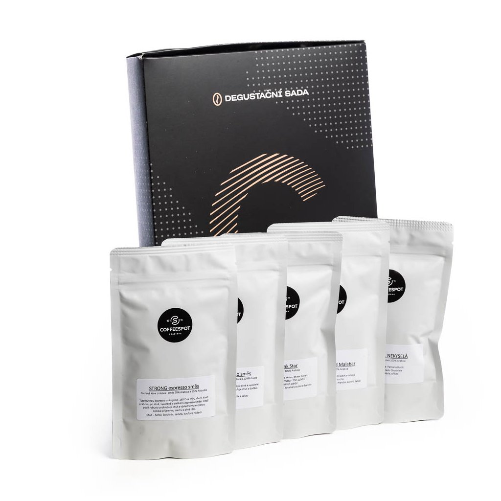 Degustační sada obsahuje: 5x 50g = 250g čerstvě pražené kávy