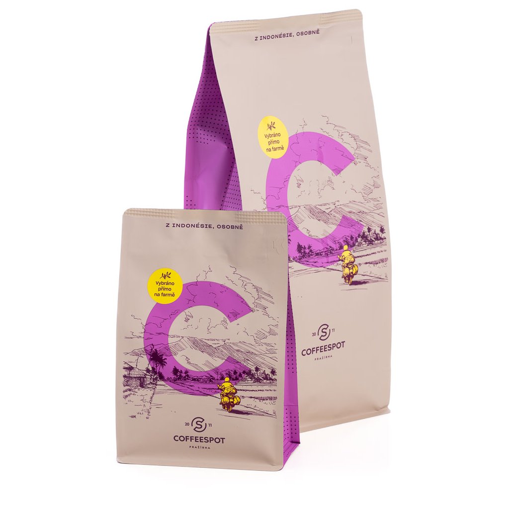 Byla to dlouhá cesta plná čekání i drobných komplikací, ale výsledek za to stál. O to větší radost máme, že vám tuto kávu nyní můžeme nabídnout. Pro tuto kávu jsme navrhli originální obaly, které mají alespoň částečně přiblížit dobrodružství a atmosféru Michalovy cesty po Indonésii. Pokud vás zajímá více detailů z této cesty, doporučujeme si přečíst články od našeho pražiče.