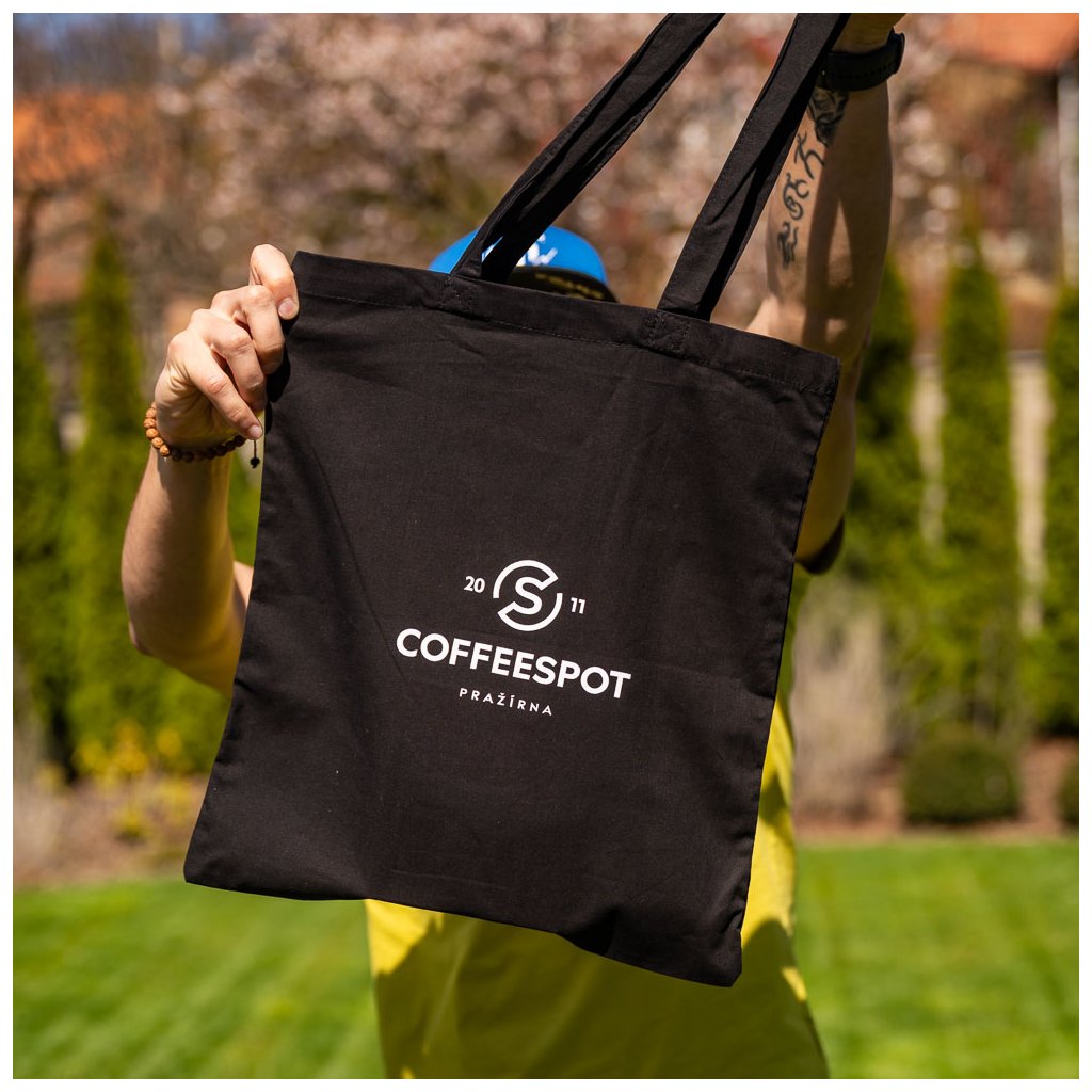 Pro zrnkovou kávu COFFEESPOT jedině se stylovou látkovou taškou.