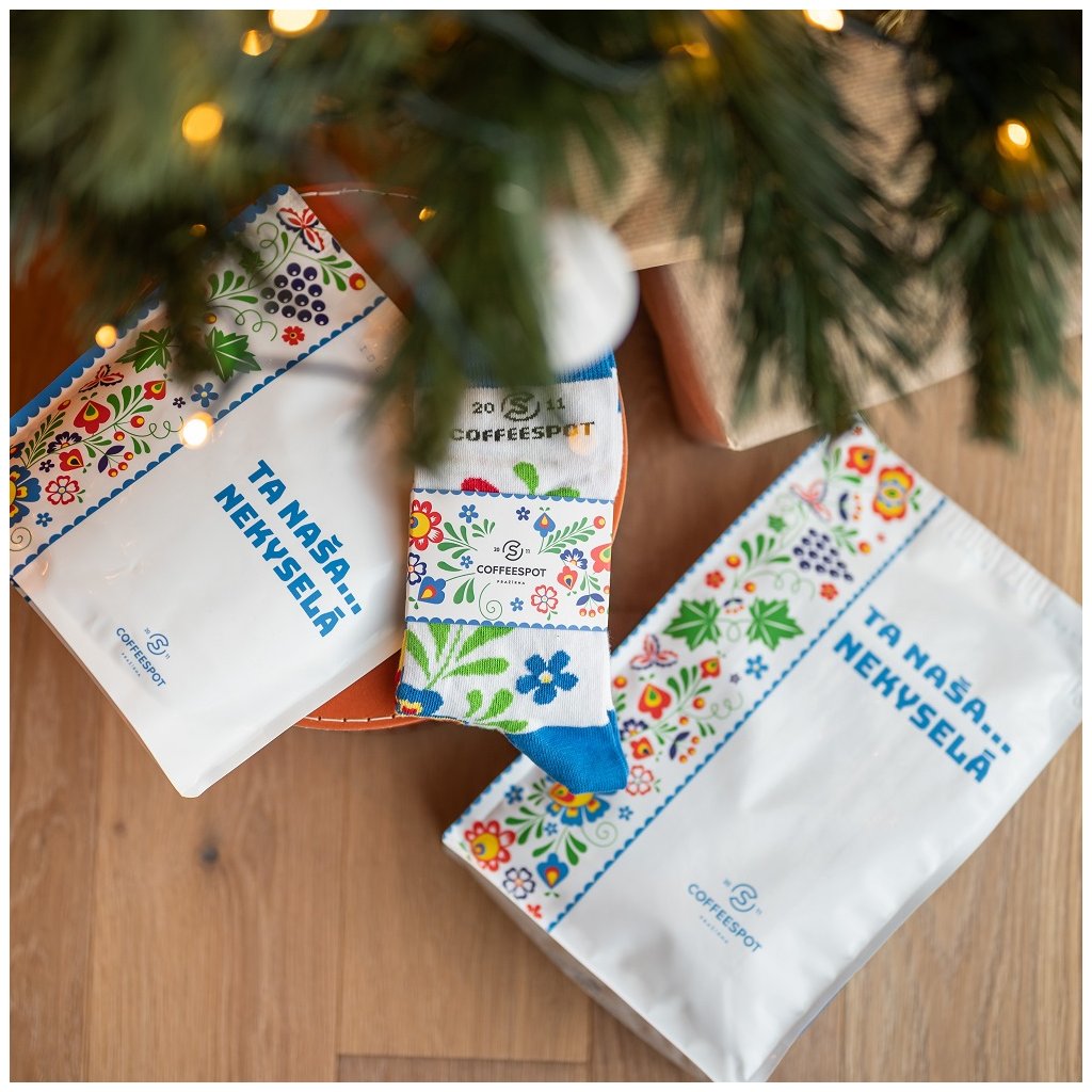 Tak dlouho jste si psali o ponožky, až jsme se je rozhodli navrhnout a vyrobit. Jejich design je inspirován obalem na espresso směs Ta naša nekyselá. Velikost: 41- 46 Materiál: 80% bavlna, 15% polyamid, 5% elastan Originální design stvořený na míru pro všechny kávomilce Pohodlné nošení