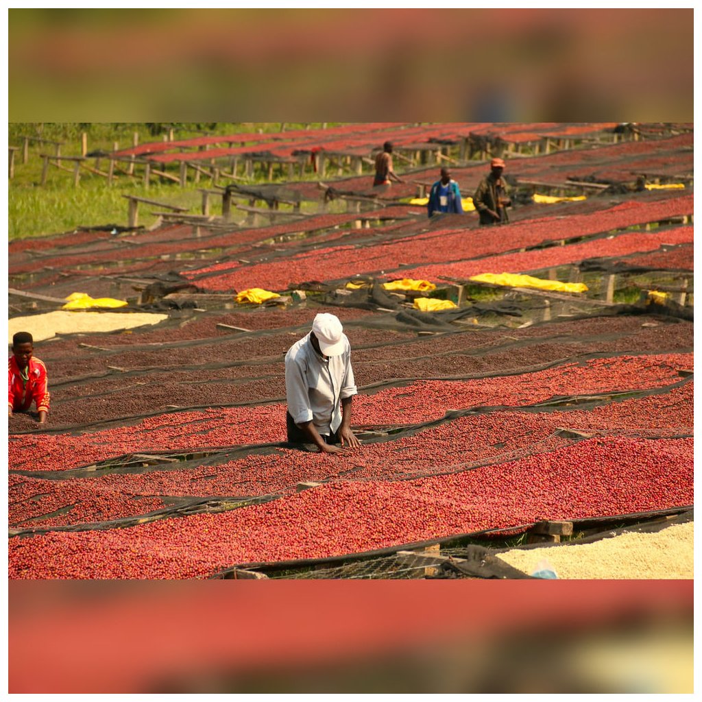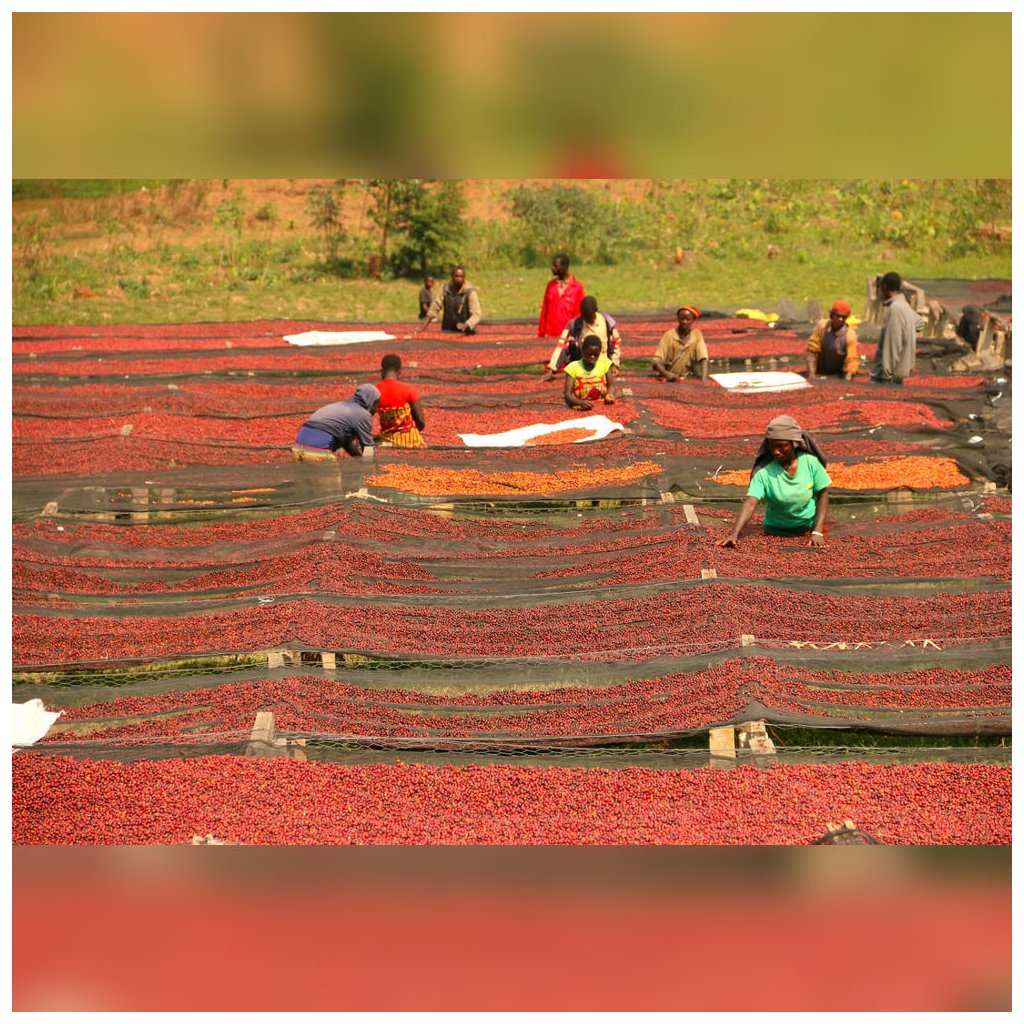 Poté přichází dlouhé sušení na vyvýšených afrických záhonech, které trvá 25–30 dní. Během této doby káva získává svou charakteristickou ovocnou hloubku.
